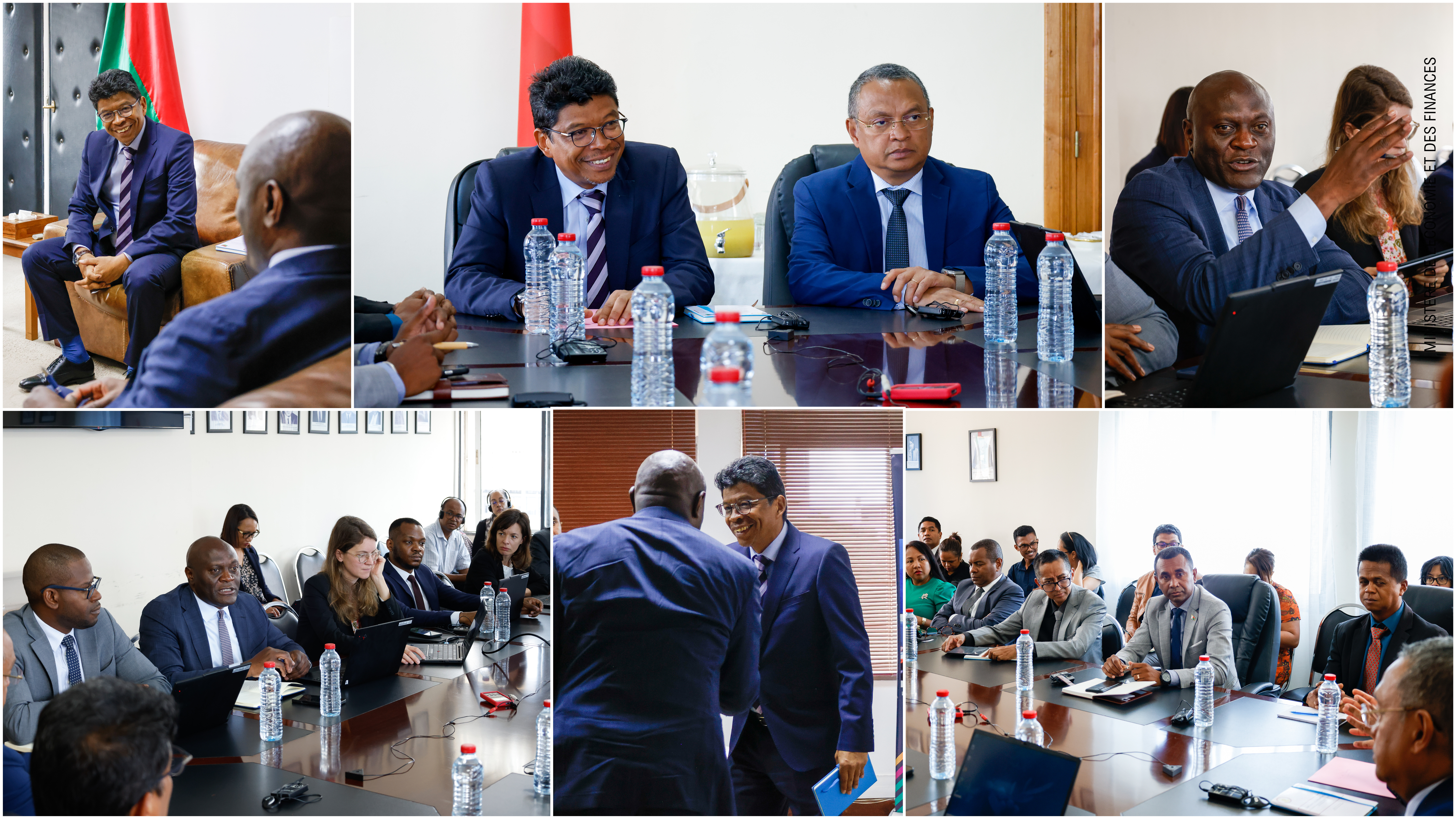 Une mission consacrée à la 3ᵉ et 4ᵉ revue des programmes Facilité Elargie de Crédit (FEC) et le Fond pour la Résilience et la Durabilité (FRD), se tient actuellement à Antananarivo. Le Ministre de l’Économie et des Finances, Dr Ramiarison Herinjatovo Aimé a acueilli la délégation du Fonds Monétaire International, conduite par Monsieur Constant Lonkeng Ngouana, en présence du Ministre de l’Énergie et des Hydrocarbures, M. Rabearimanga Radonirina Lucas, du Ministre de l’Environnement et du Développement Durable, M. Andriatsihala Nolave Luck Aristide, ainsi que du Gouverneur de la Banky Foiben'i Madagasikara, M. Andrianarivelo Aivo, aux côtés des équipes techniques concernées.